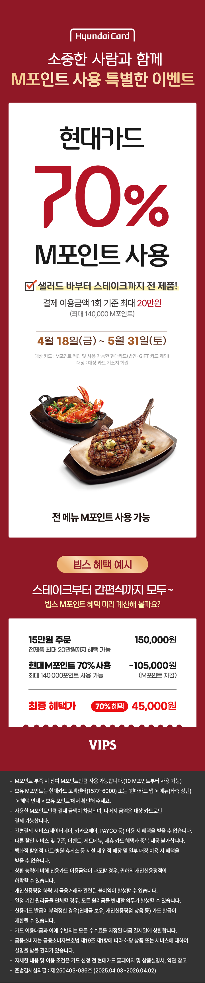 [빕스] 전메뉴 최대 70%까지?! (~5/31)